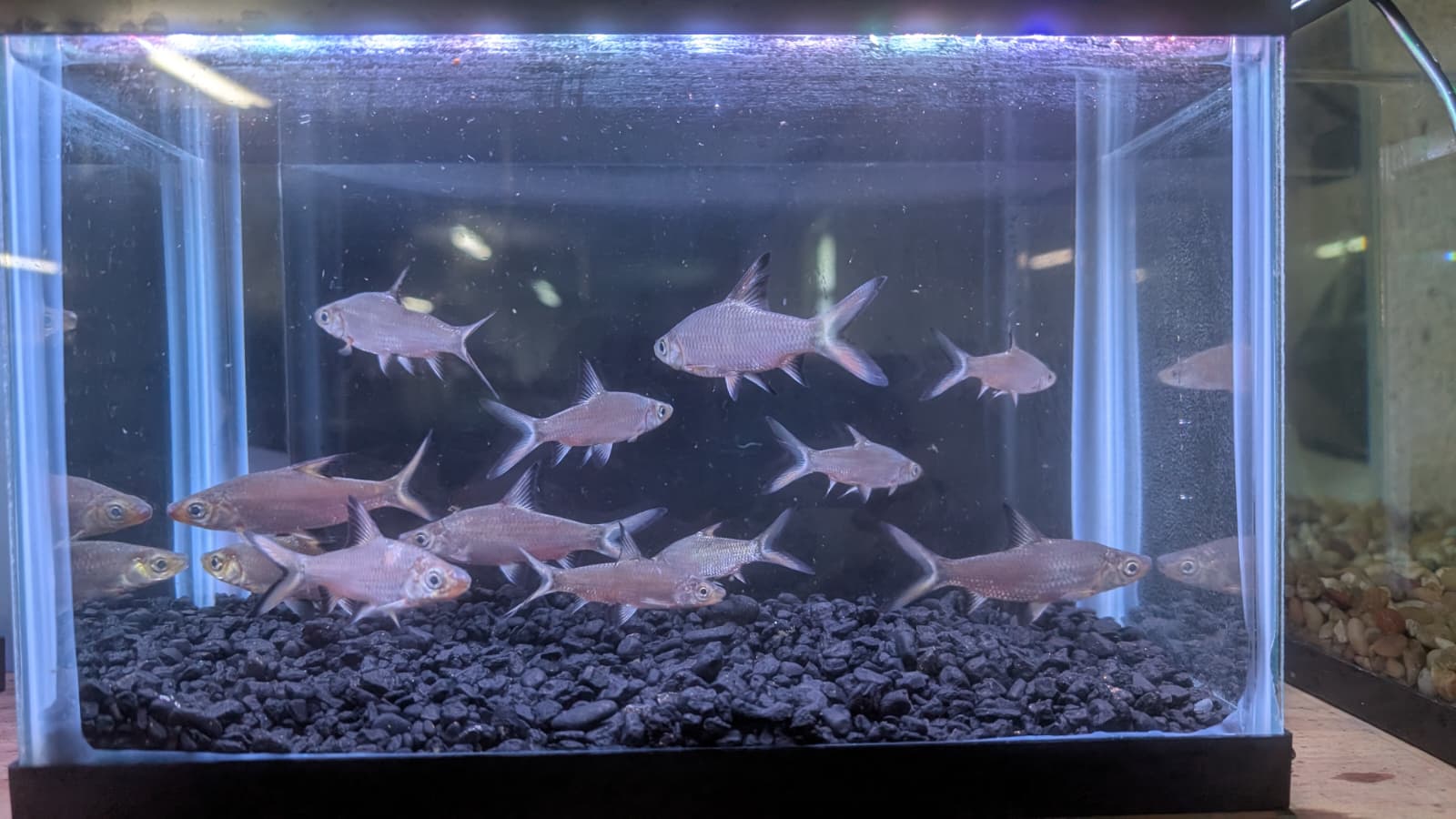 Balas need good aeration and ideally a back up system in the event of a power cut. Feed a high quality flake-based diet.