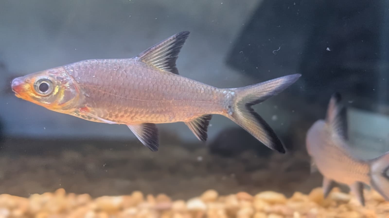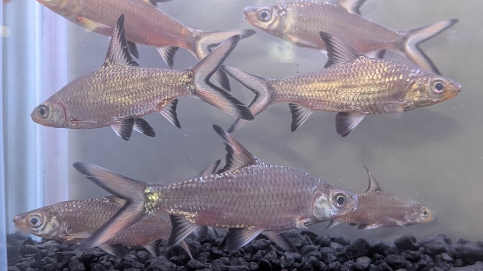 Bala Sharks (Balantiocheilos melanopterus) are a schooling fish and, despite their name, are not actual sharks, but rather a member of the cyprinid family. Known for their torpedo-shaped body, and large fins with distinct black margins, they are sometimes called the tricolor shark, silver shark, or shark minnow. Naturally occurring in the rivers of Southeast Asia, they are extremely active and social fish so, in order to thrive, are best kept in a small school of at least 3, with unobstructed, open swimming space in the tank.