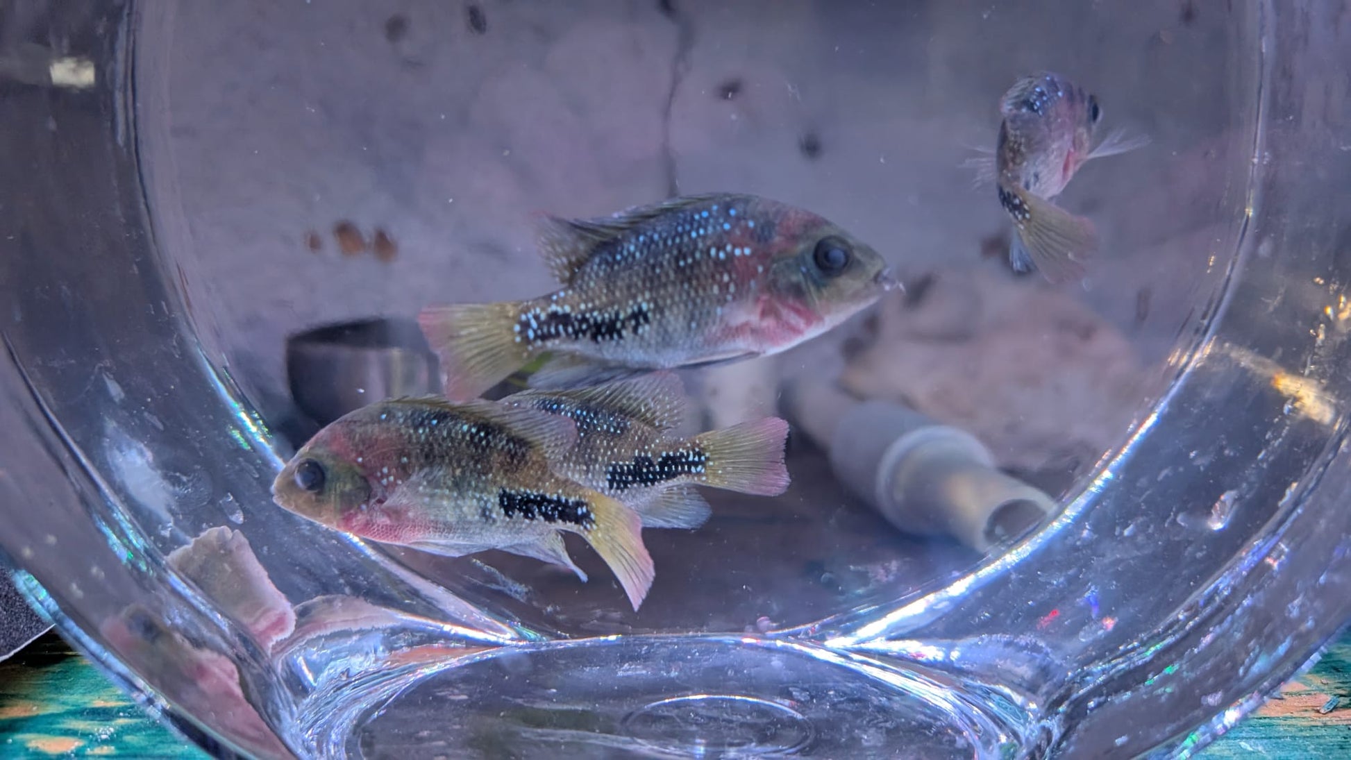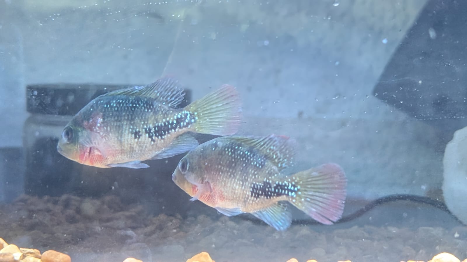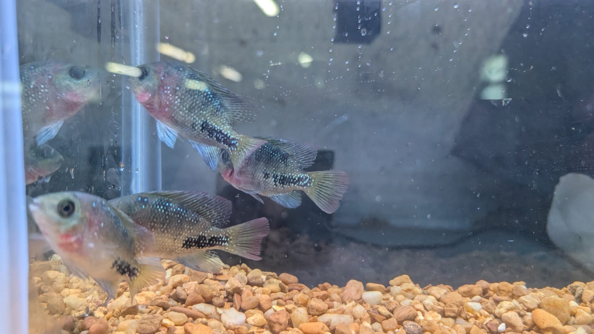 The most distinctive feature of the Vieja Synspilum is its reddish-orange head, which gives the fish its common name: Redhead or Firehead Cichlid. Not terribly colorful as juveniles, their colors come into their own as they mature: with the males being more colorful. The photos are of the actual 2" and 3" fish we have for sale.