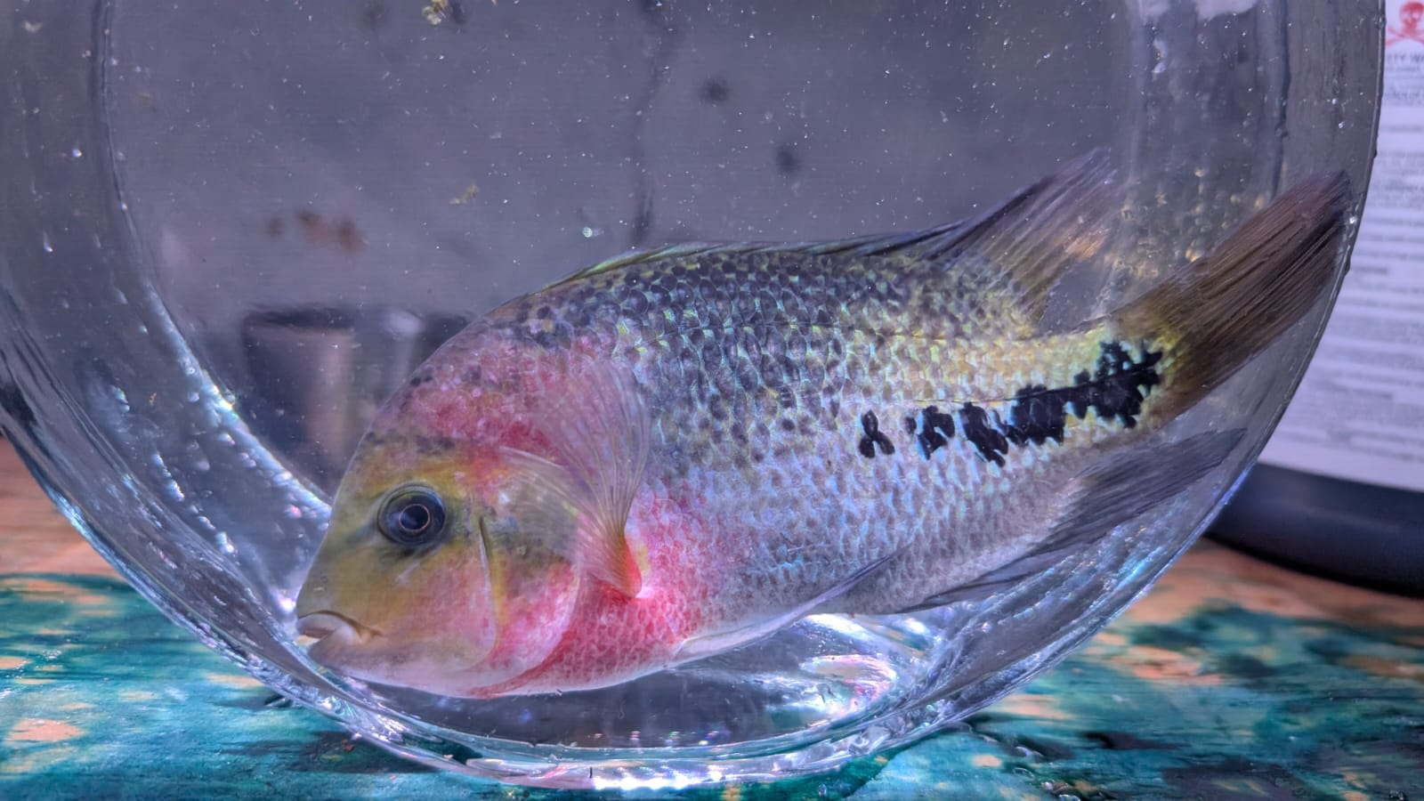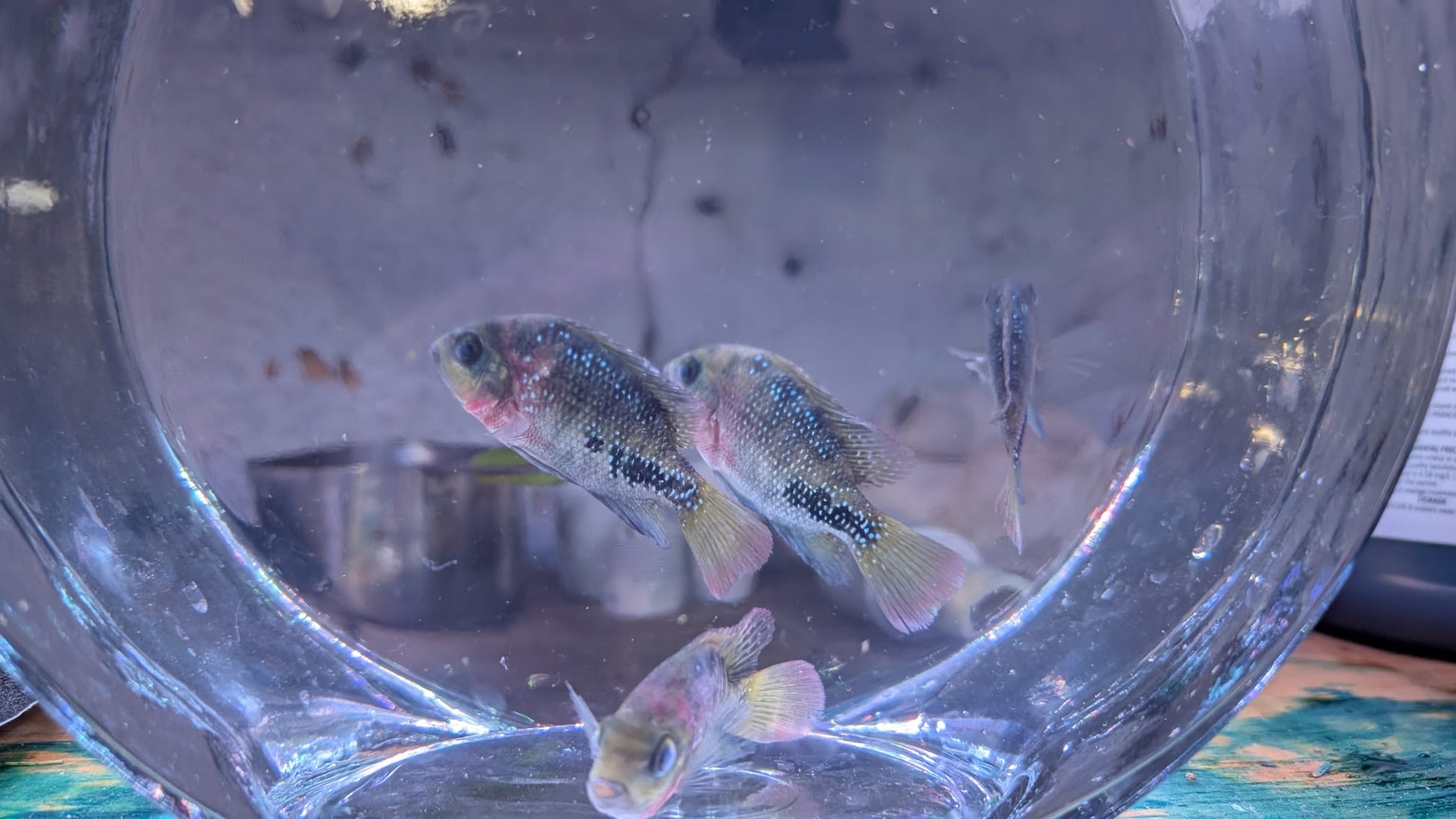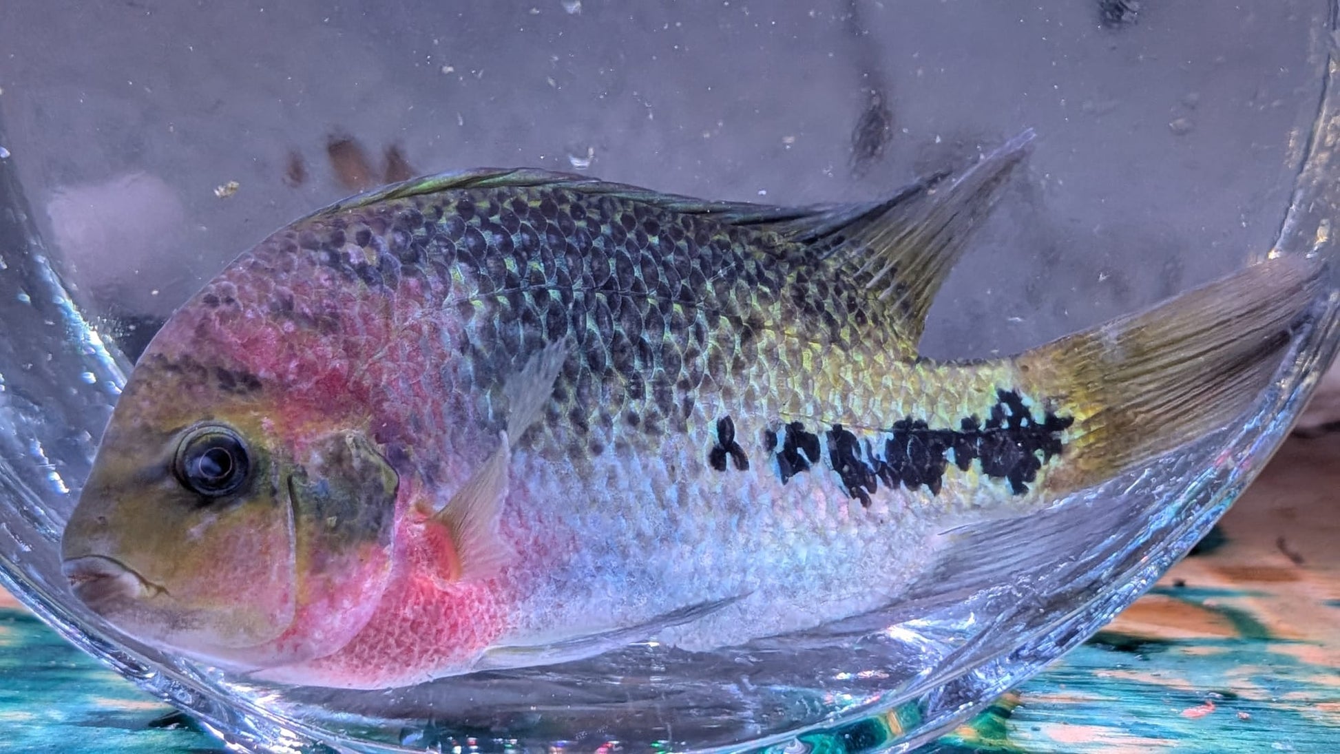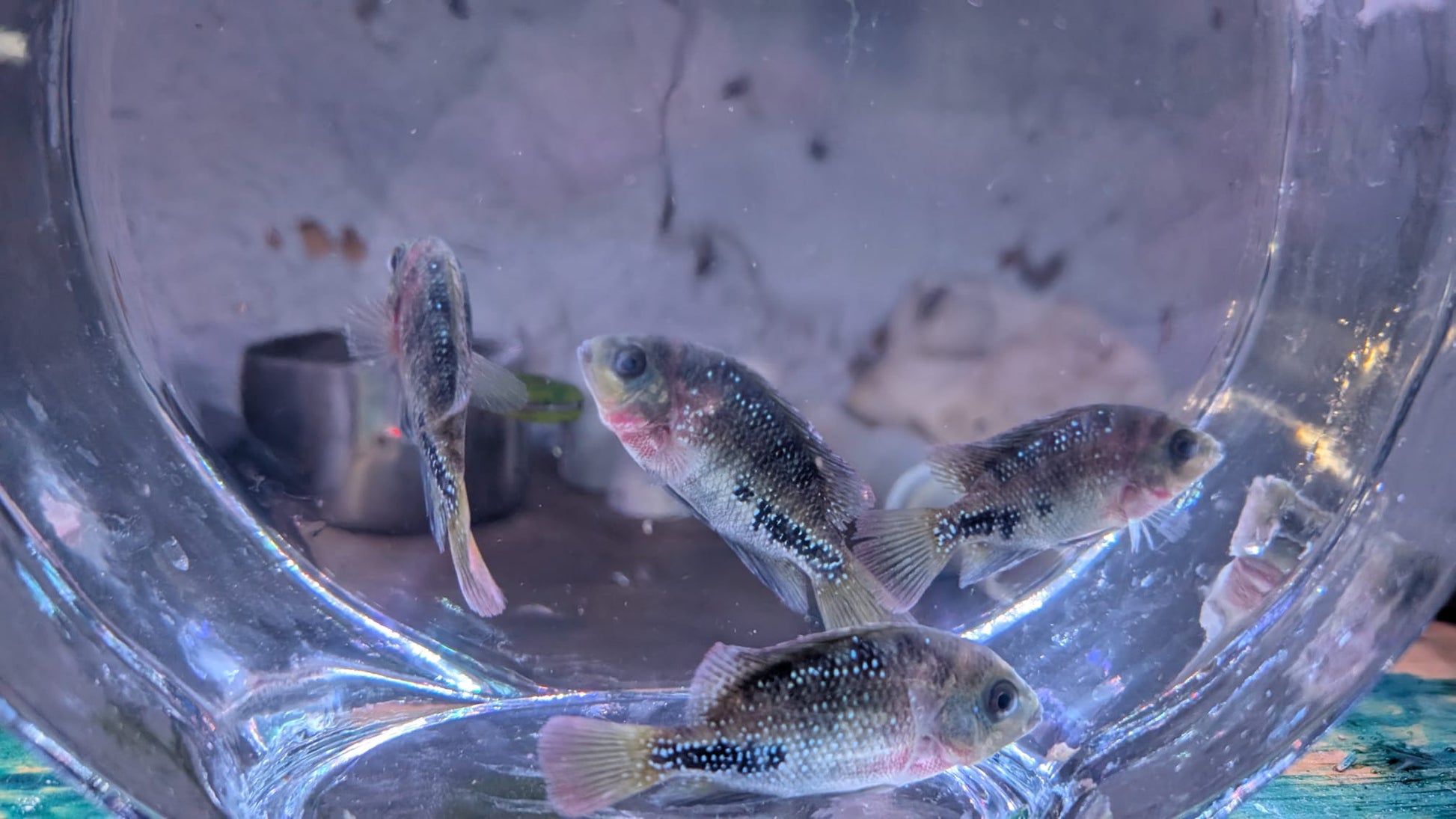 The most distinctive feature of the Vieja Synspilum is its reddish-orange head, which gives the fish its common name: Redhead or Firehead Cichlid. Not terribly colorful as juveniles, their colors come into their own as they mature: with the males being more colorful. The photos are of the actual 2" and 3" fish we have for sale.